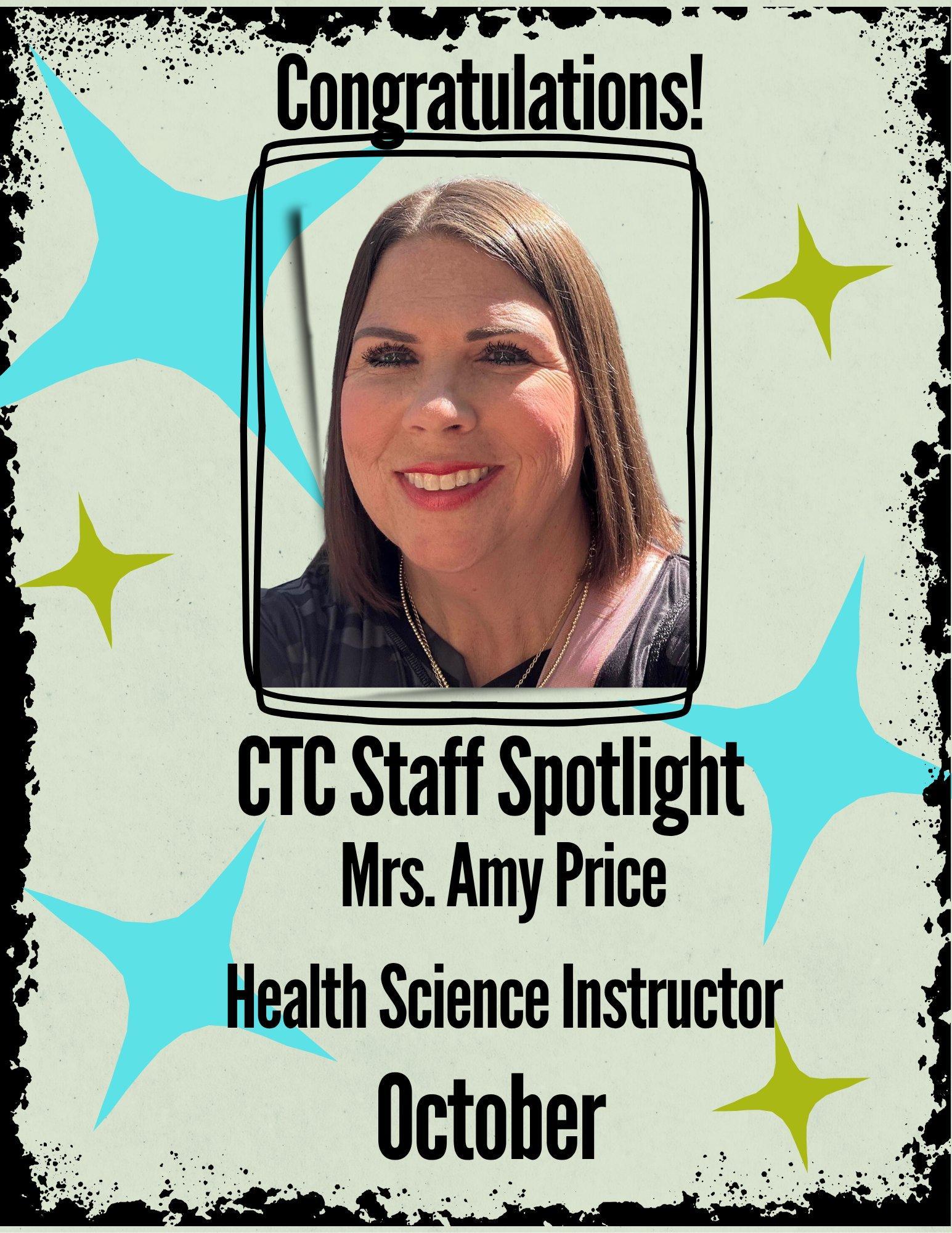 π October Staff Spotlight - This October, we celebrate Mrs. Amy Price, Health Science Instructor at the Kosciusko-Attala Career Tech Center! π